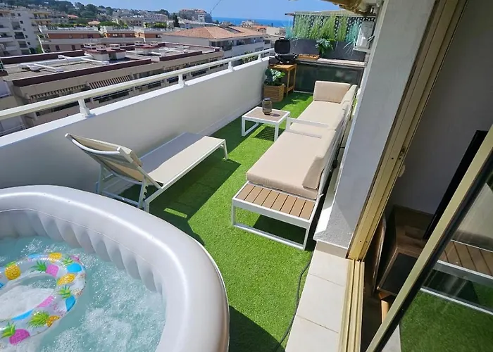 Denne ferielejlighed ligger 850 meter fra Parc de la Pinède. Da Ugo Ristorante Pizzeria serverer en række retter middelhaves. Picasso-museet kan nås på få minutter til fods.